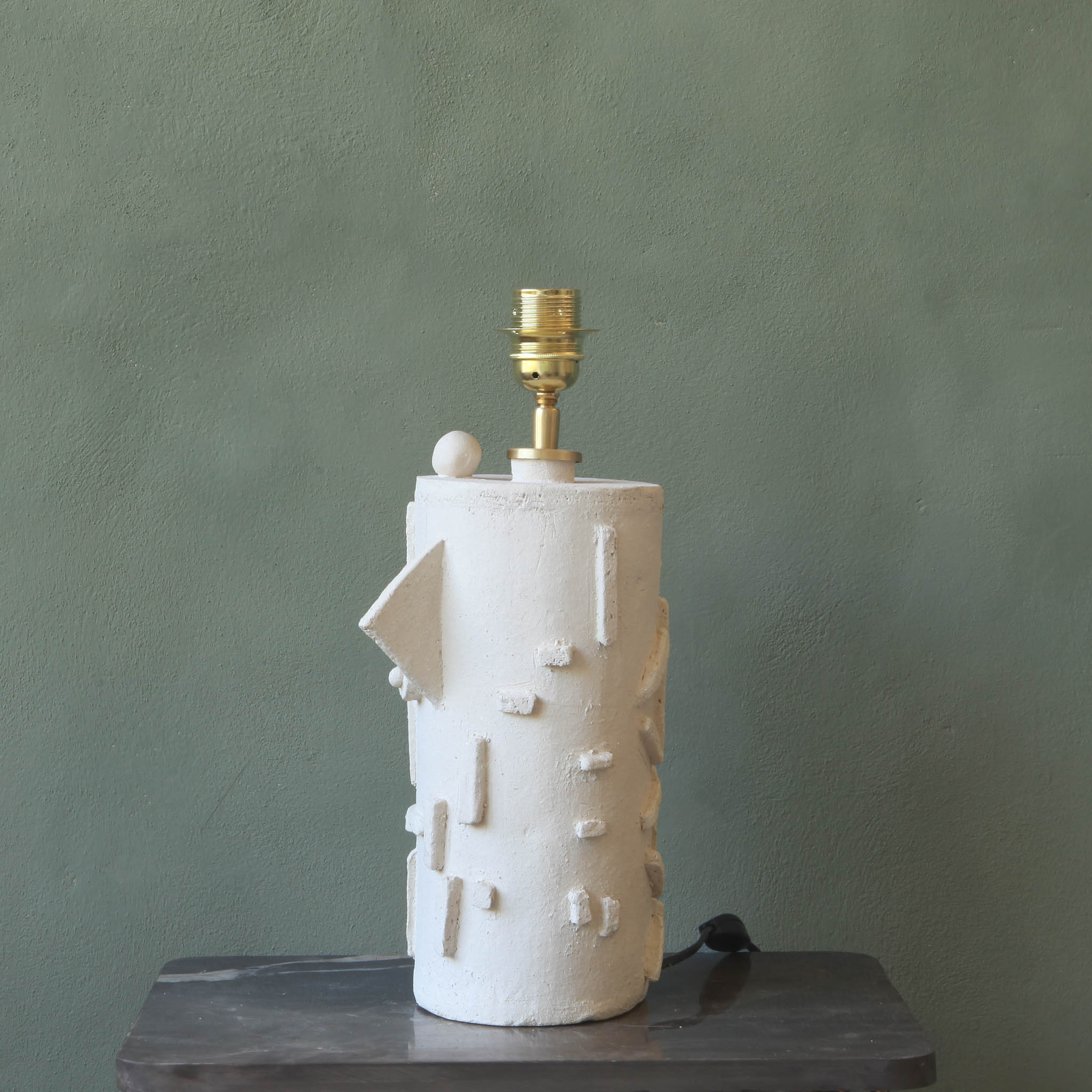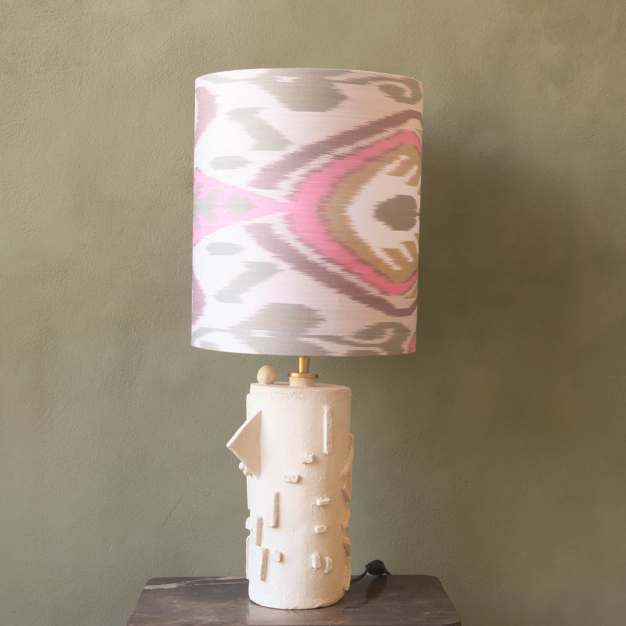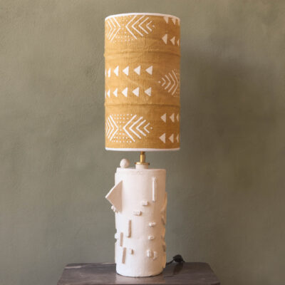 Hecho a mano con arcilla blanca sin esmaltar, el pie de lámpara Narizza es una pieza única que equilibra la elegancia con el juego. Sus formas geométricas crean una presencia ligera, casi caprichosa, mientras que su superficie cruda resalta la belleza de la cerámica pura.
