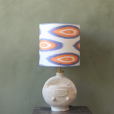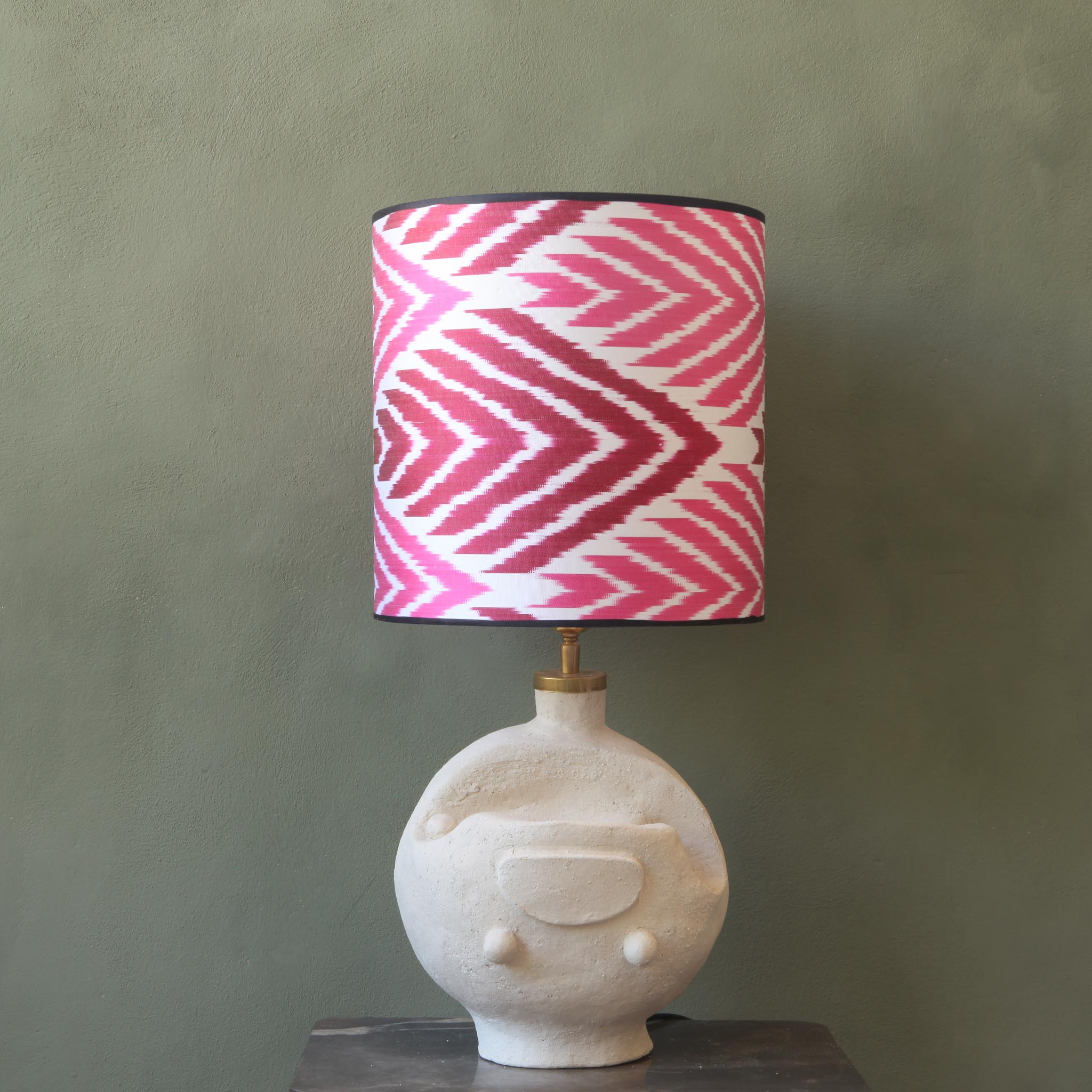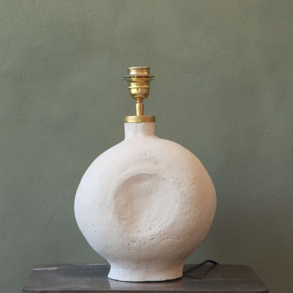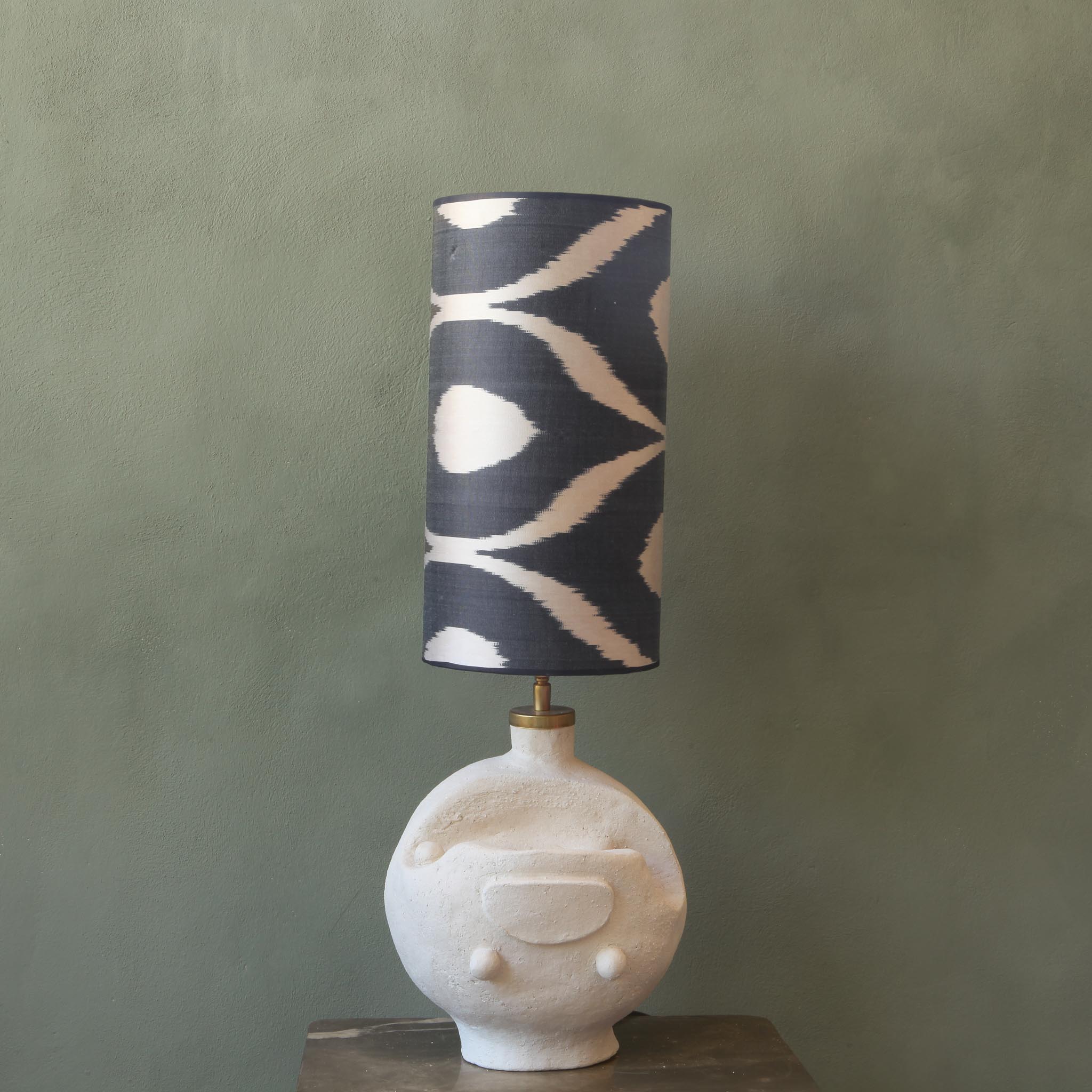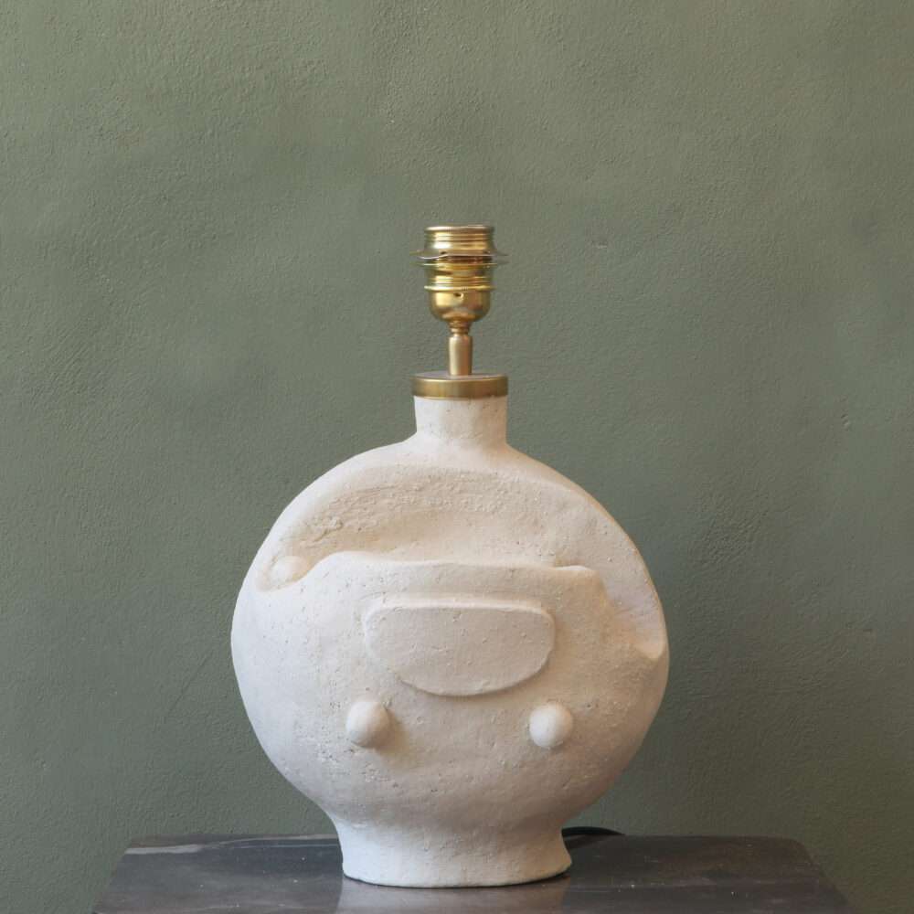 Smile a unique handmade lamp. Handcrafted in raw, unglazed ceramic, Smile is a one-of-a-kind lamp base that radiates joy. Its sculptural form seems to smile back at you—an uplifting presence that adds character and warmth to any room.