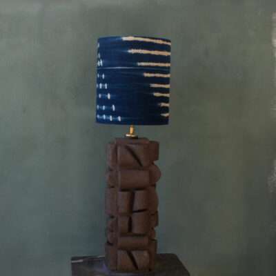Brownie handcrafted ceramic statement lamp. Brownie is an attractive statement piece. Rising and elegant with a contemporary structure on its different tiles. Anthracite brown clay.