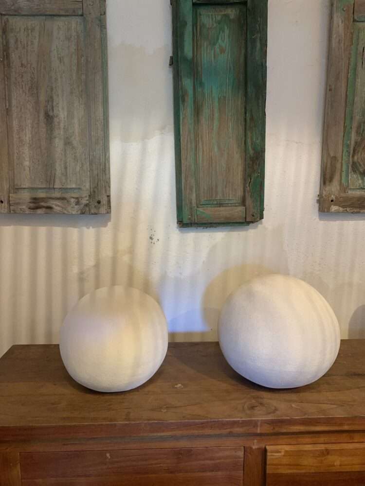 These sculptural ceramic pieces are handmade in my studio in Spain. Its soft, organic shape explores the balance between simplicity and presence. Inspired by natural forms and Mediterranean light, the sculpture brings a quiet and tactile element into an interior.